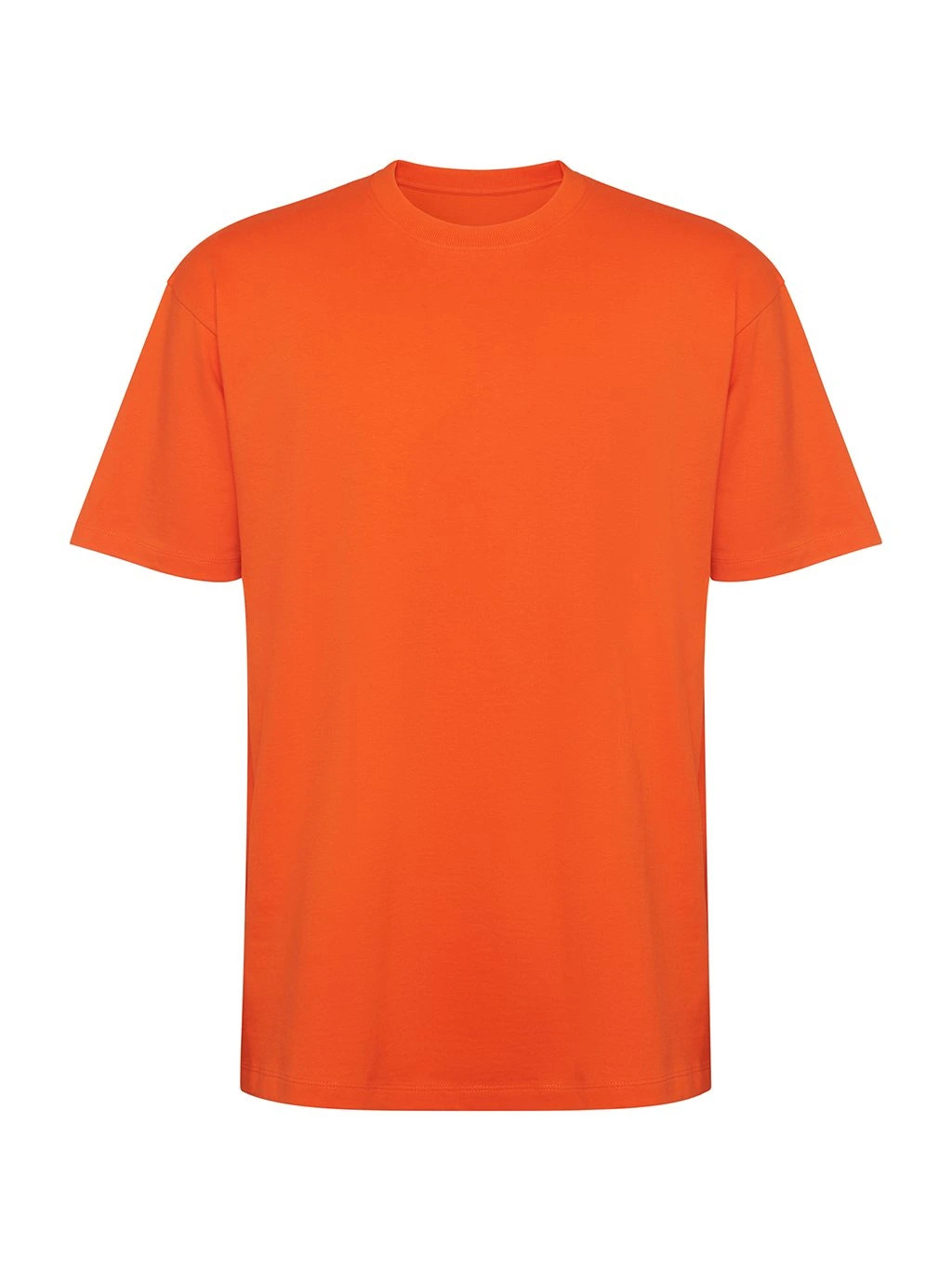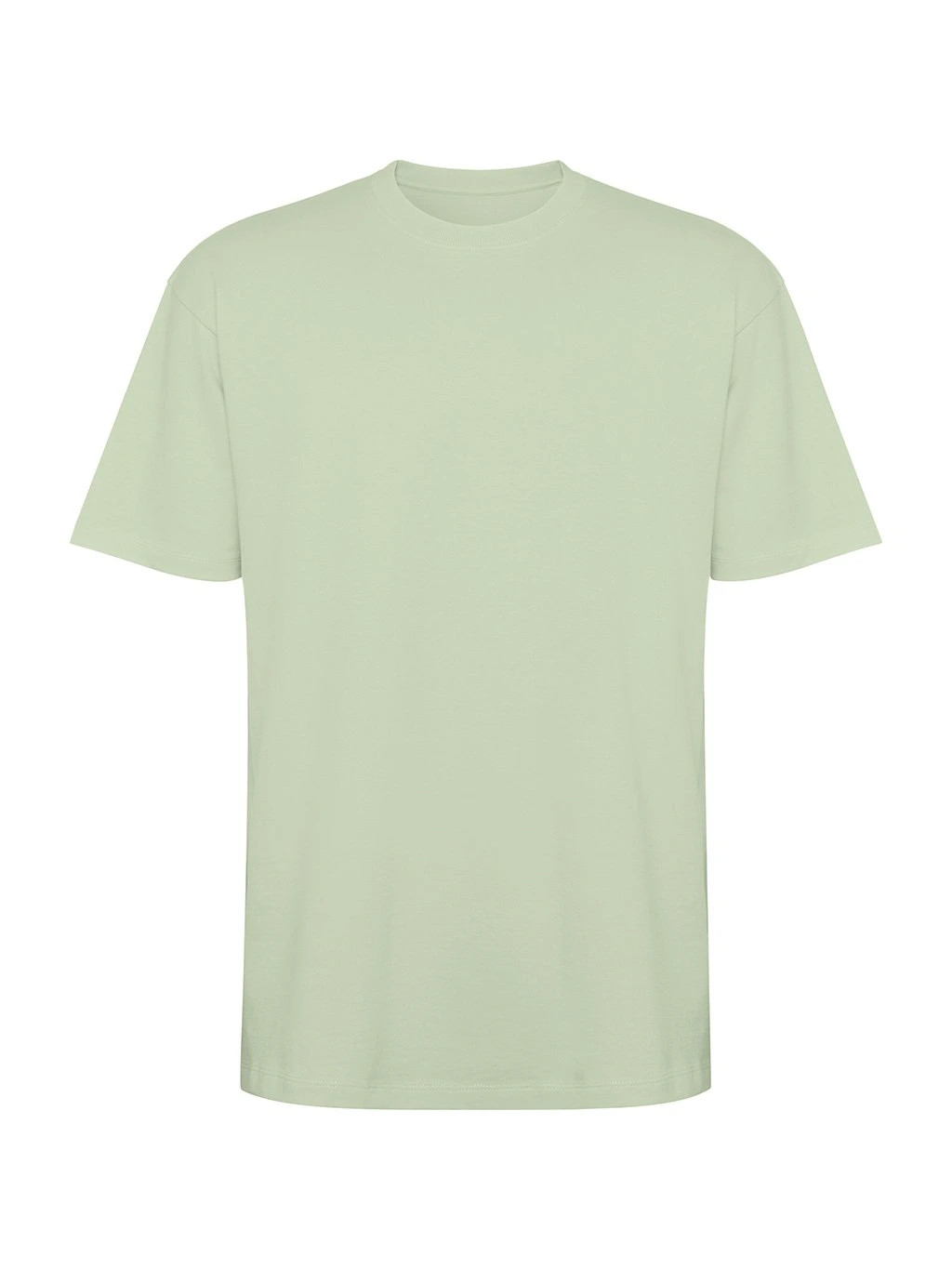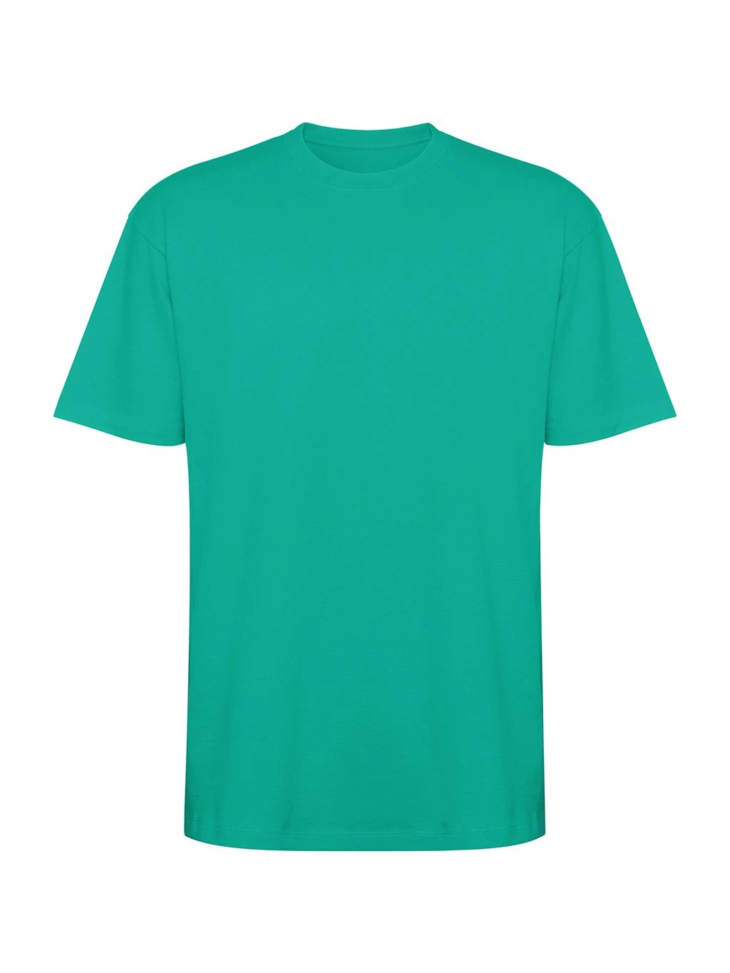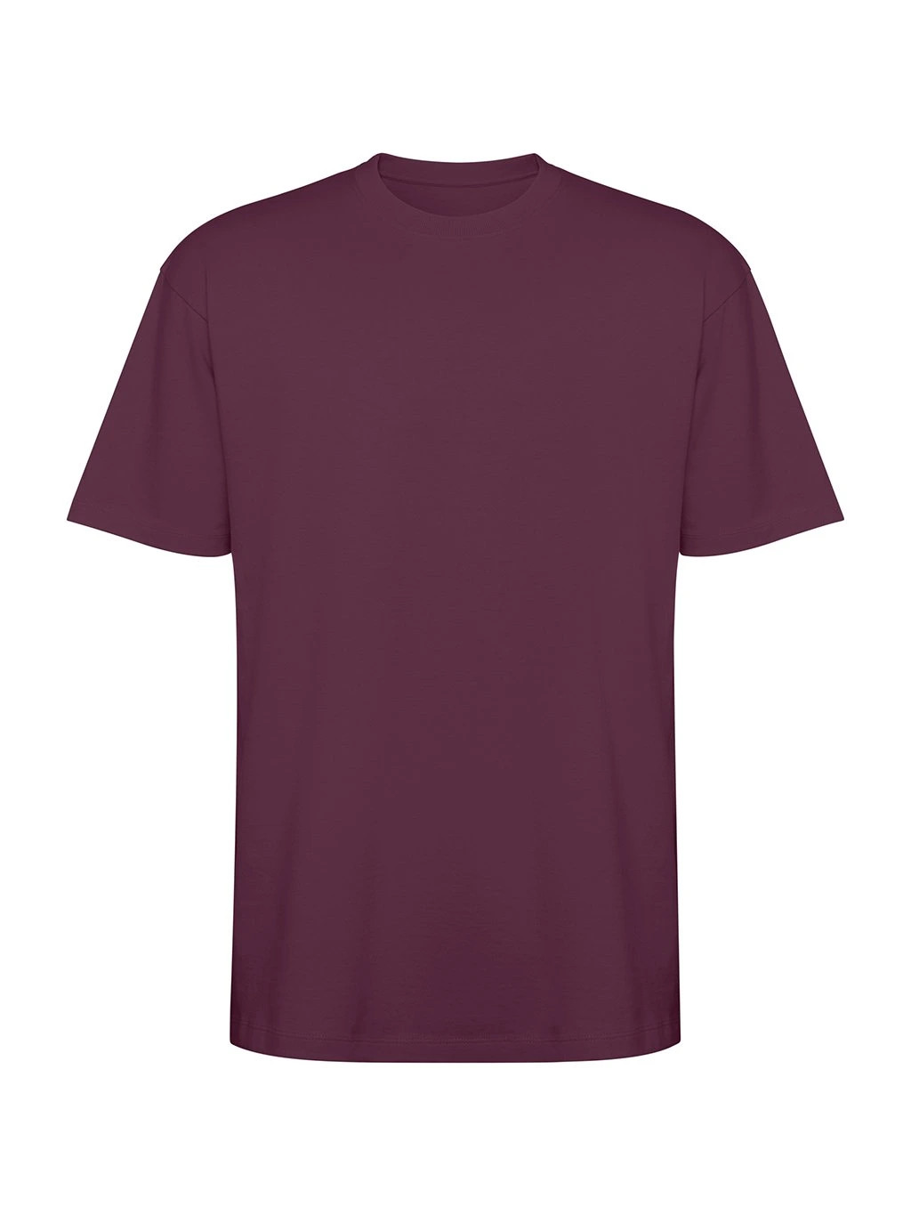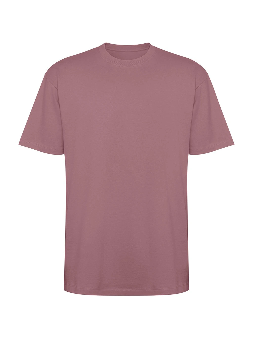 Tričko s krátkým rukávem v nadměrné velikosti. Okrouhlý límec lemovaný 2x1 žebrováním s odpovídajícími kryty švů. Boční švy. Široké dvojité prošití na rukávech a spodním lemu.