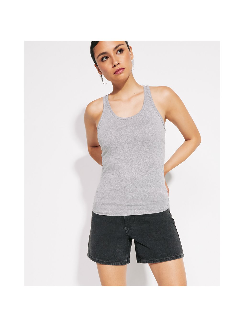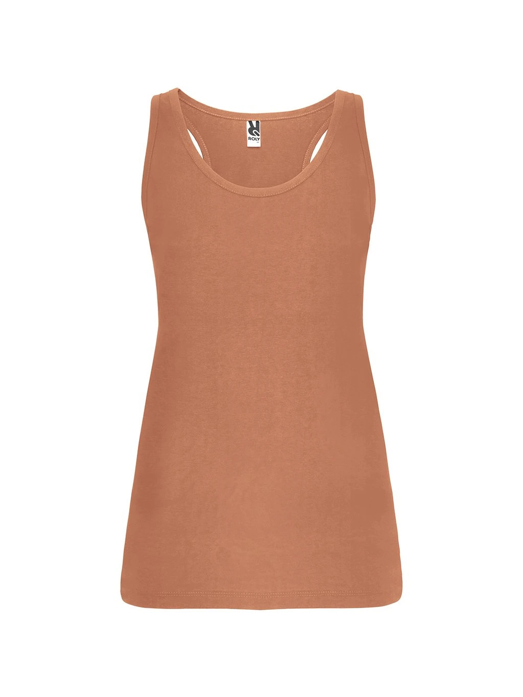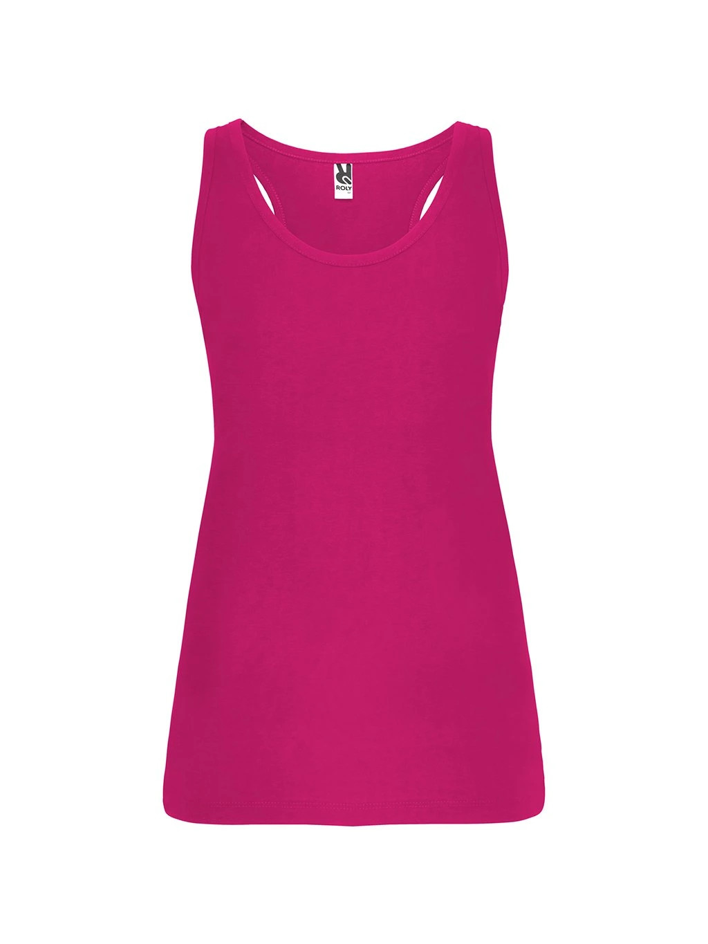 Přiléhavé dámské tílko s boxerskými ramínky z hladkého úpletu. Lemování výstřihu a ramínek z žebrovaného úpletu, boční švy. Složení 100% bavlna