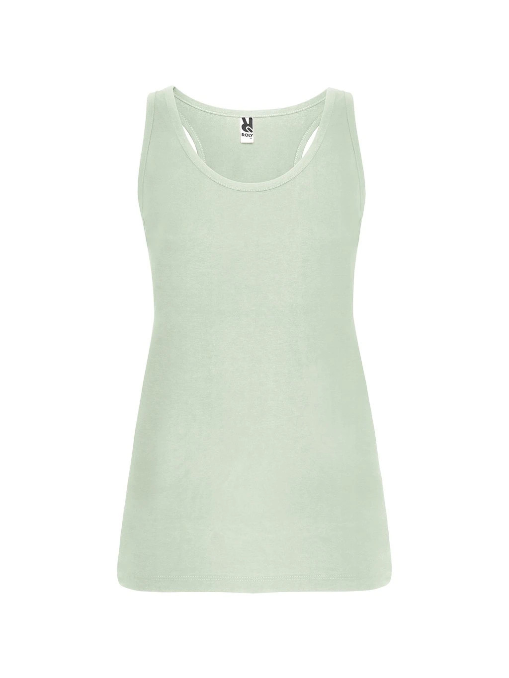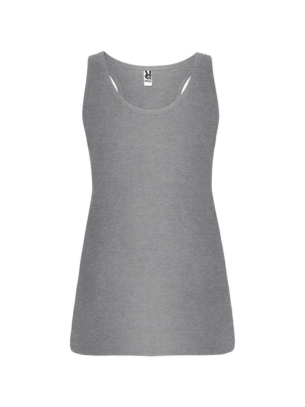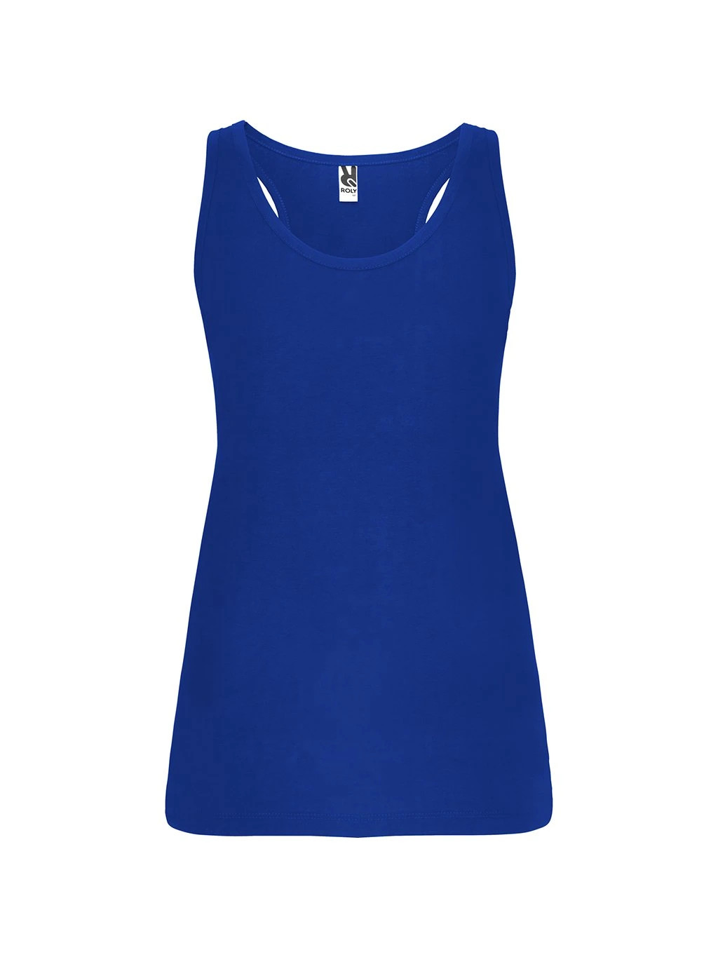 Přiléhavé dámské tílko s boxerskými ramínky z hladkého úpletu. Lemování výstřihu a ramínek z žebrovaného úpletu, boční švy. Složení 100% bavlna