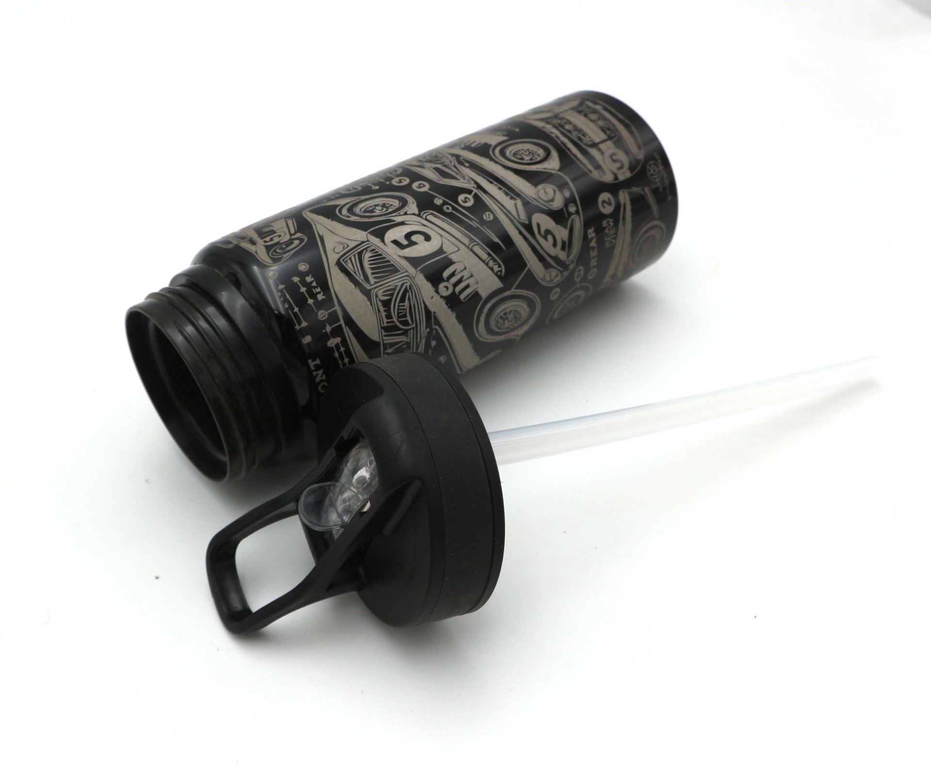 Hliníková láhev s masivním tělem. Objem 680 ml. Víko s praktickou zasouvací hubicí a rukojetí pro snadné přenášení.