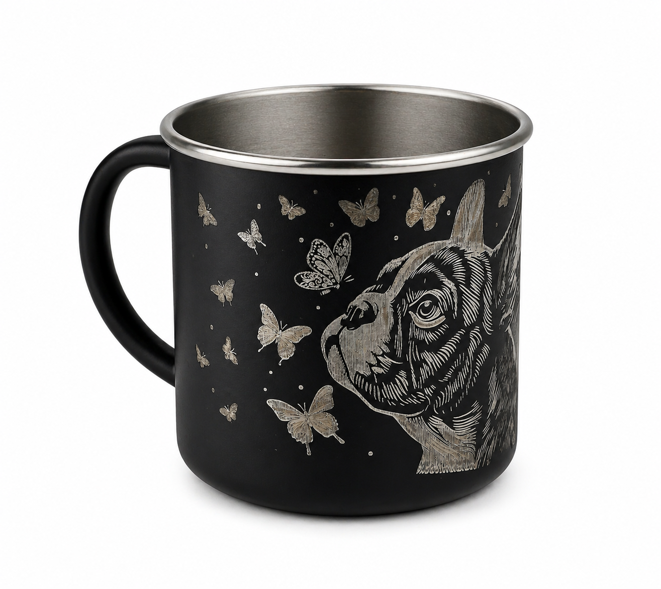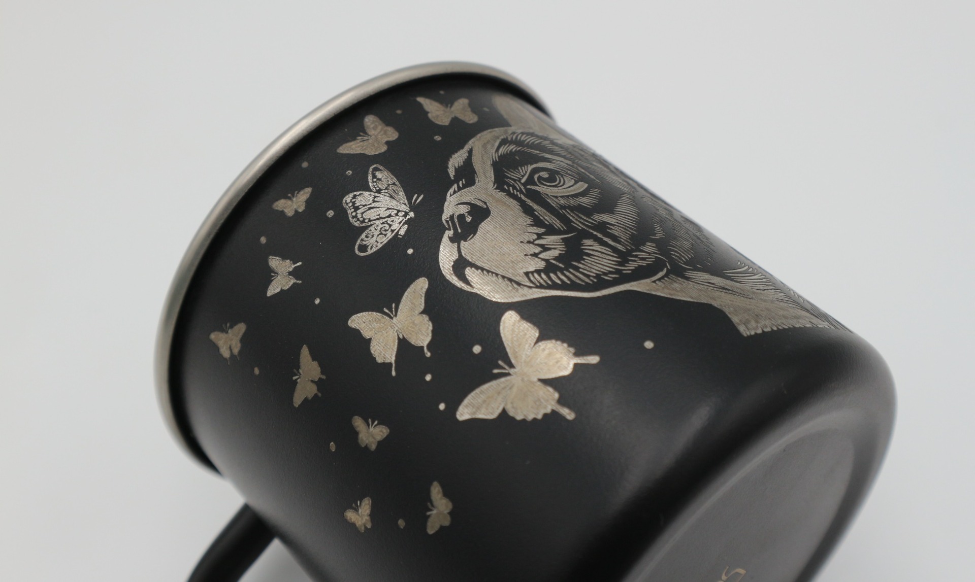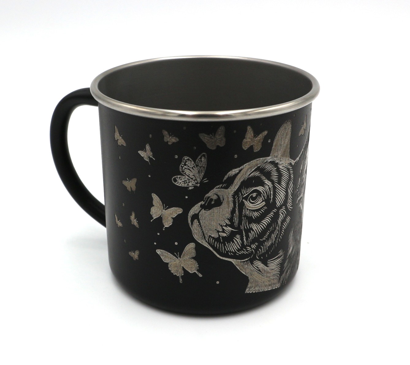 Hrnek vyrobený z recyklované nerezové oceli 304. Objem: 350 ml.