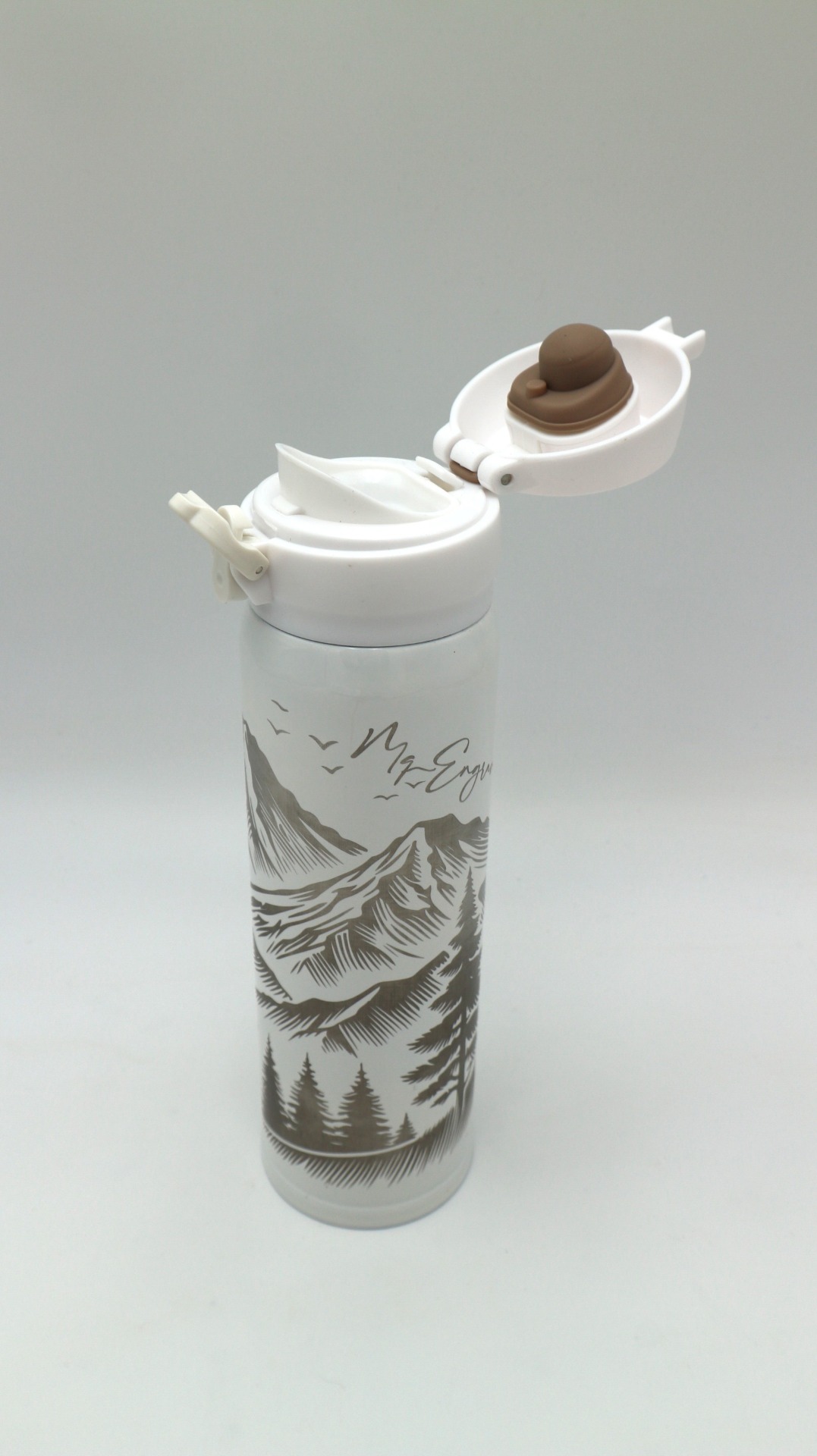 Dvoustěnná termoska z nerezové oceli 304. Otevírací tlačítko s bezpečnostním uzávěrem. Objem 450 ml. S termoskou Palmer neztratíte ani kapku.