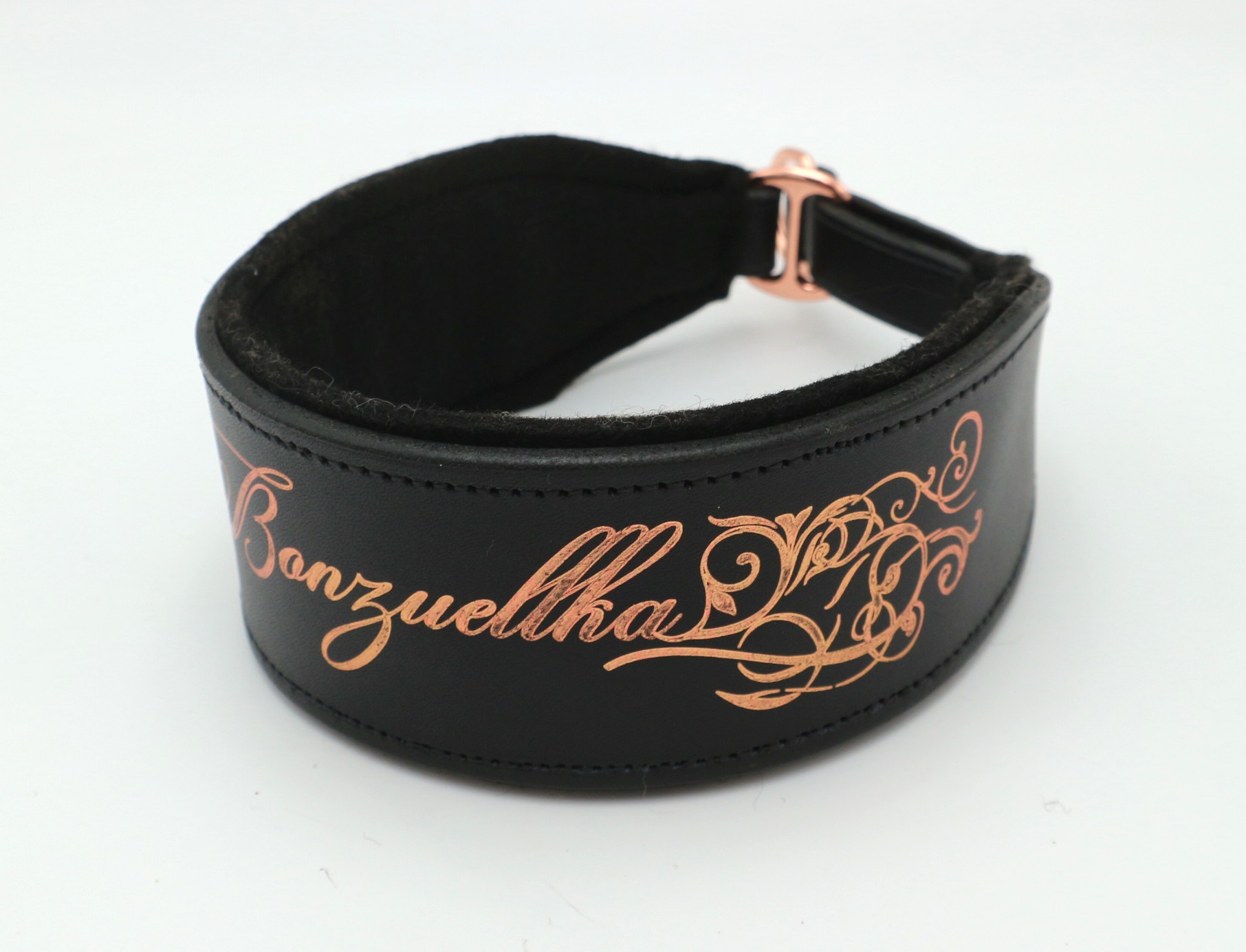 Vnitřní část obojku je dopněna vlněnou plstí (100% přírodní materiál), která je šetrná k srsti psa, hypoalergení ale také rychle usychá, když se pes v létě rád koupe a navíc oproti jiným podložením, vyniká dlouhou životností. Vlněná plsť zajišťuje pohodlí při nošení, nedře a nevytrhává srst.