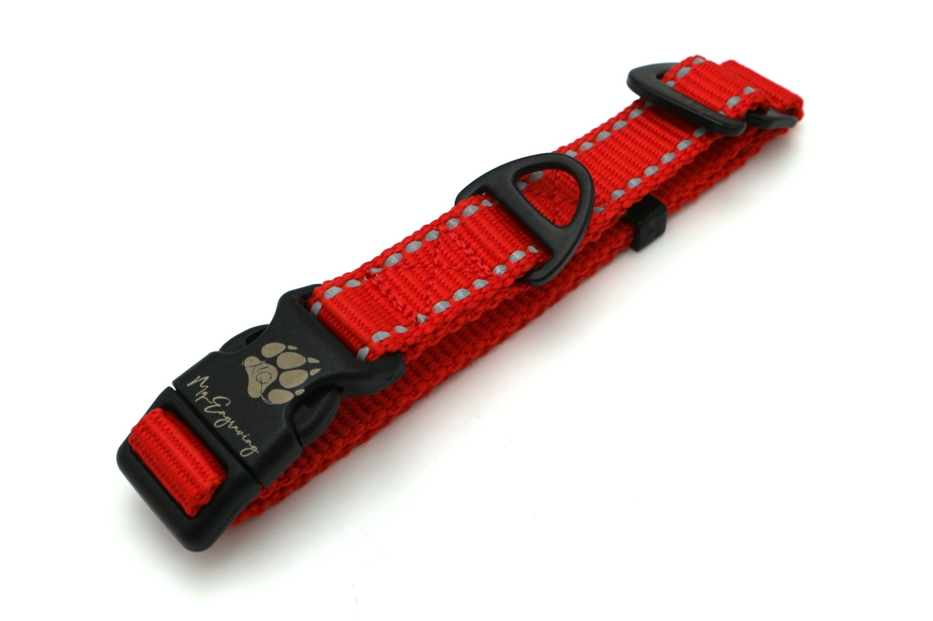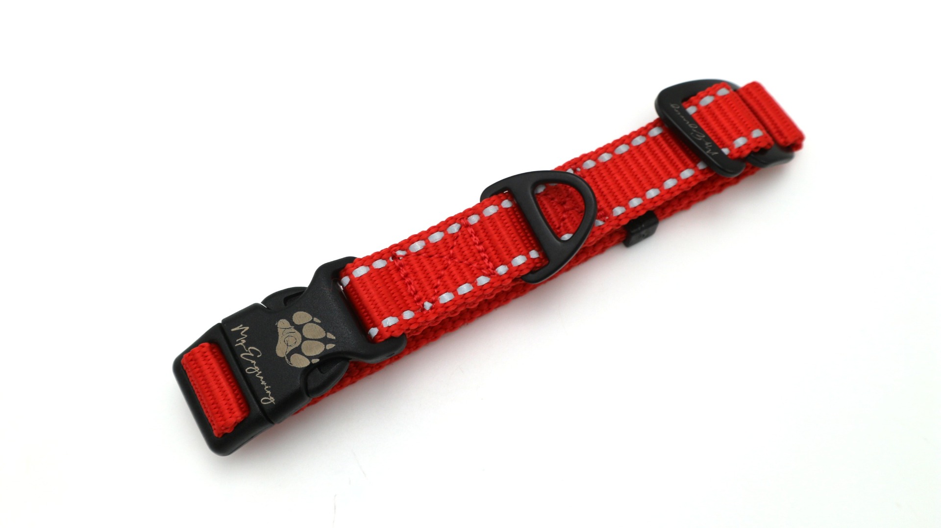 Nastavení velikosti se provádí pomocí hliníkového G-háčku. Po odháknutí druhého popruhu stačí posunutím spony snadno nastavit příslušnou velikost obojku a poté zase zaháknout druhý popruh zpět. Nedochází tak k náhodného proklouznutí popruhu v průvlečce, jak tomu bývá u klasických průvlečných spon. Navíc díky hliníkovému G-háčku není obojek zbytečně těžký.