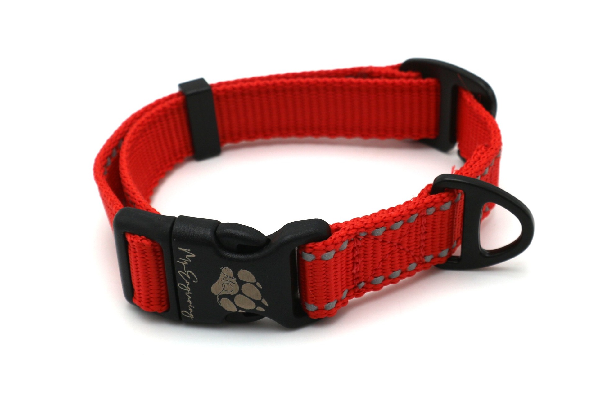 Obojek je vyroben z polypropylenového popruhu (PP) s pevnou strukturou, který vyniká pevností (nosnost popruhu až 500kg) a díky své pevné struktuře lepe odolává oděru. Popruh je opatřen reflexním páskem pro lepší viditelnost ve tmě.
