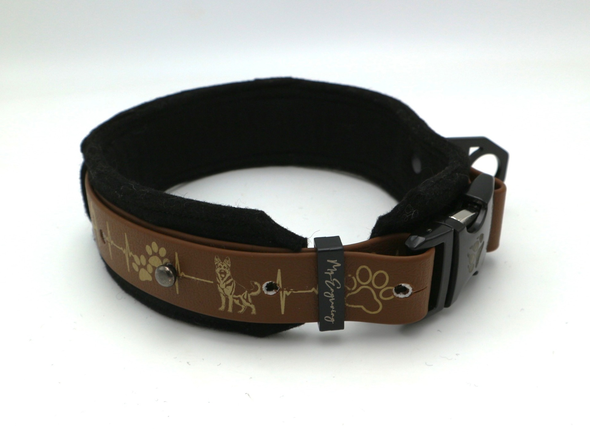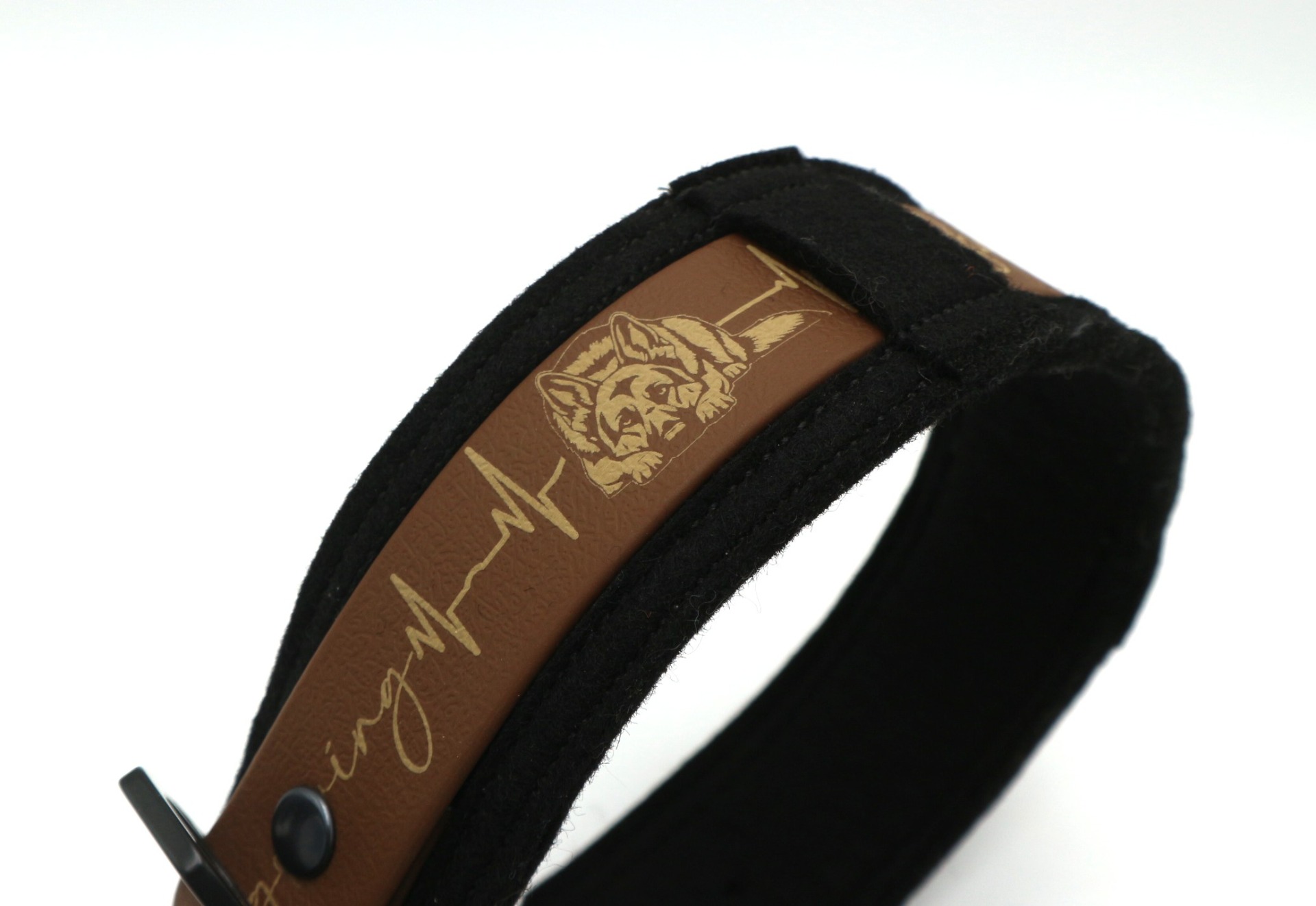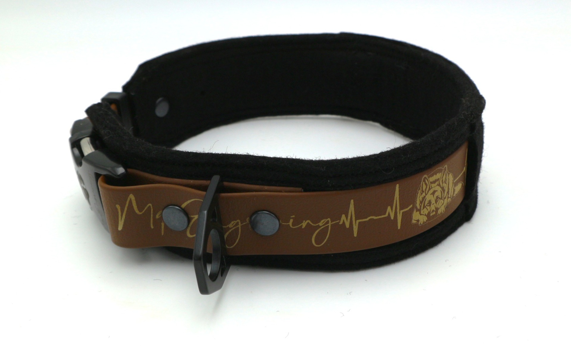 Vnitřní část obojku je doplněna vlněnou plstí se zesílenými okraji (100% přírodní materiál). Zdvojený okraj plstě udržuje popruh ve středu podložení. Ovčí vlna je šetrná k srsti psa, je hypoalergenní, rychle usychá (když se pes v létě rád koupe). Oproti jiným druhům podložení, vyniká dlouhou životností a stálostí, ani po letech nedochází k jejímu úbytku. Vlněná plsť zajišťuje pohodlí při nošení, nedře a nevytrhává srst.