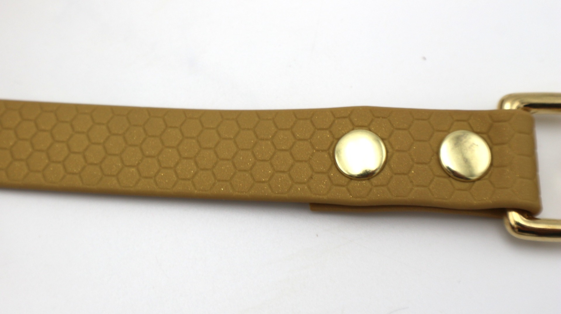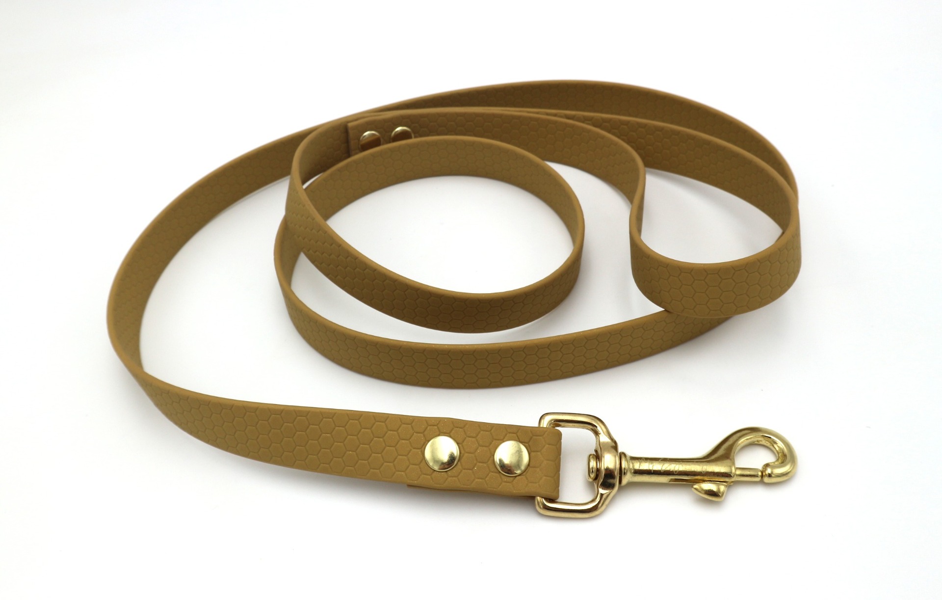 Vysoce odolné vodítko je vyrobeno z voděodolného popruhu HEXA (známý jako BioThane®). BioThane® hexa je speciální povrch, který má oboustrannou strukturu ve tvaru včelí plástve (Hexa vzor) a je potažený PVC/TPU materiálem - díky tomu méně prokluzuje a je příjemný na dotyk. Popruh vyniká odolností vůči oděru a vytahování. Dále nepohlcuje pachy ani plísně a je jednoduše omyvatelný vodou. Minimální nosnost popruhu je 380 kg.