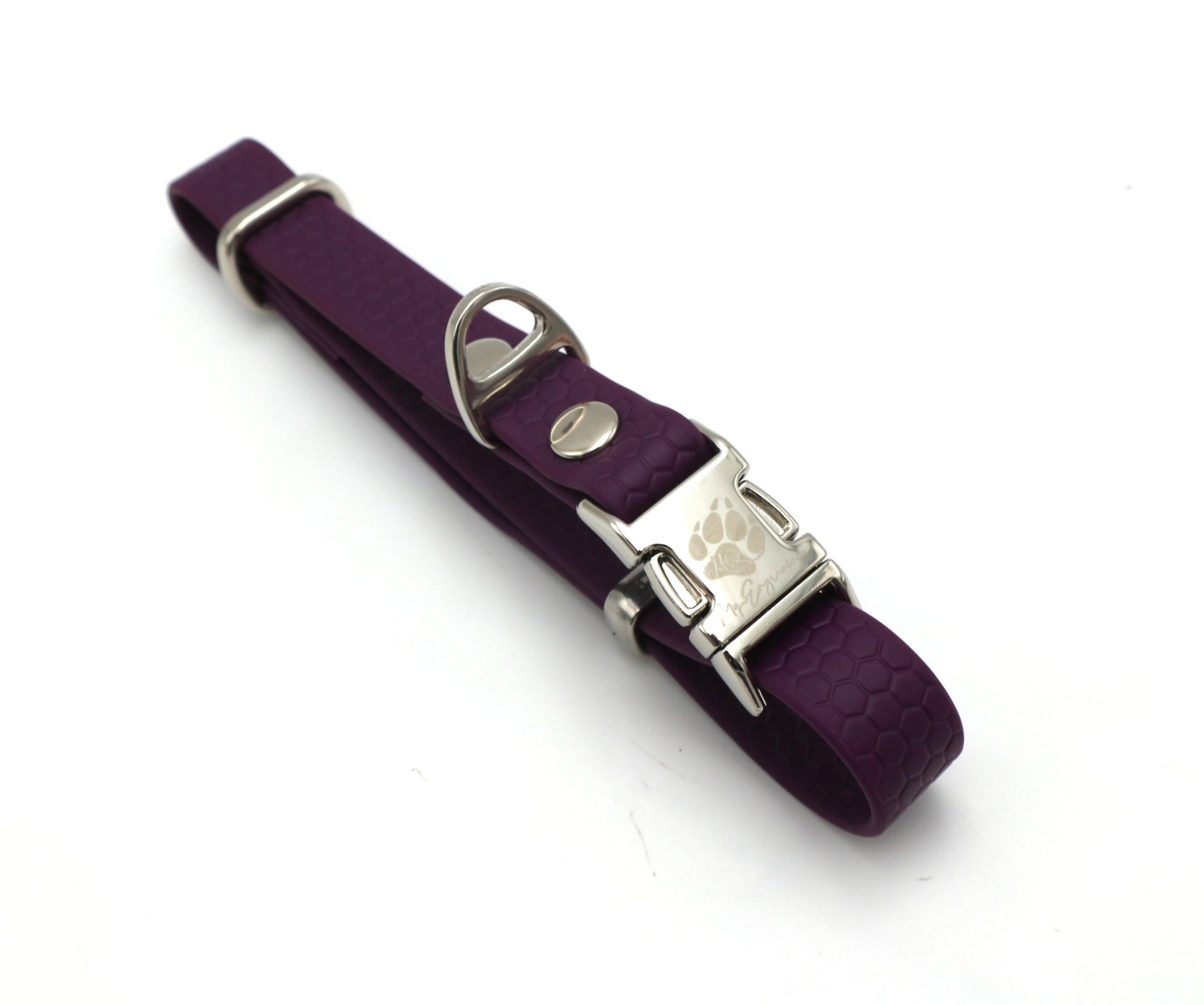 Vysoce odolný obojek HEXA s kovovým zapínáním, je vyroben z voděodolného popruhu (známý jako BioThane® ). Jedná se o popruh, který je potažený PVC materiálem. Oproti běžným polypropylenovým popruhům se vyznačuje mnohem větší odolností. Popruh vyniká odolností vůči oděru a vytahování. Dále nepohlcuje pachy ani plísně a je jednoduše omyvatelný vodou. Popruh má oboustrannou strukturu ve tvaru včelí plástve (Hexa vzor), díky strukturovanému povrchu, méně prokluzuje a je příjemné na dotyk.