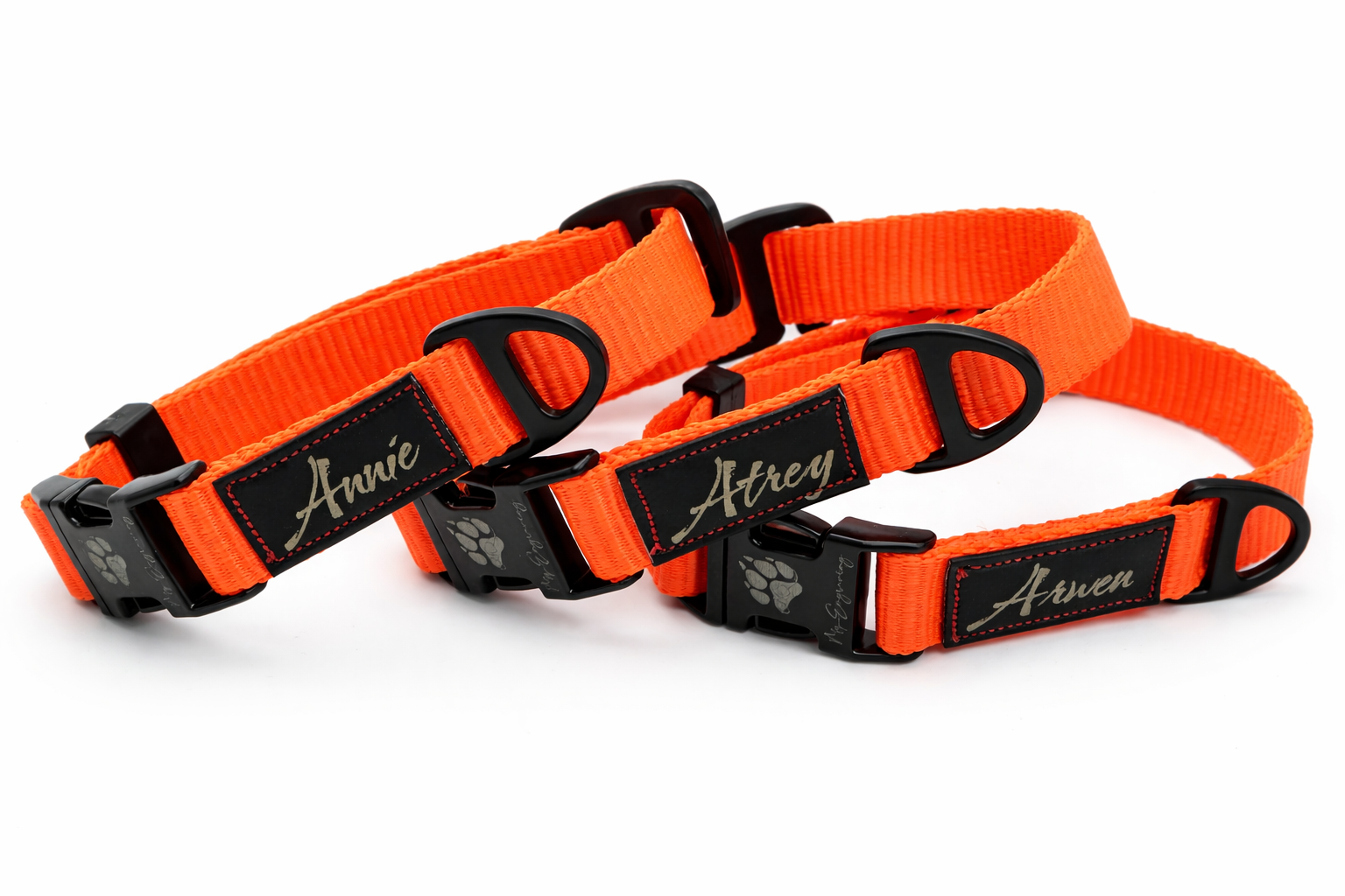 Obojek je vyroben z polyesterového popruhu (PES) s měkčí strukturou, který vyniká vysokou pevností (nosnost popruhu až 600kg) a nízkou navlhavostí. Díky tomu popruh i při namočení, rychle usychá.