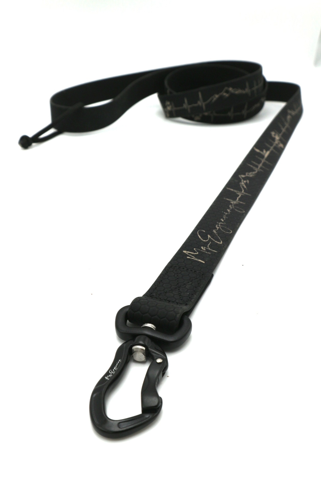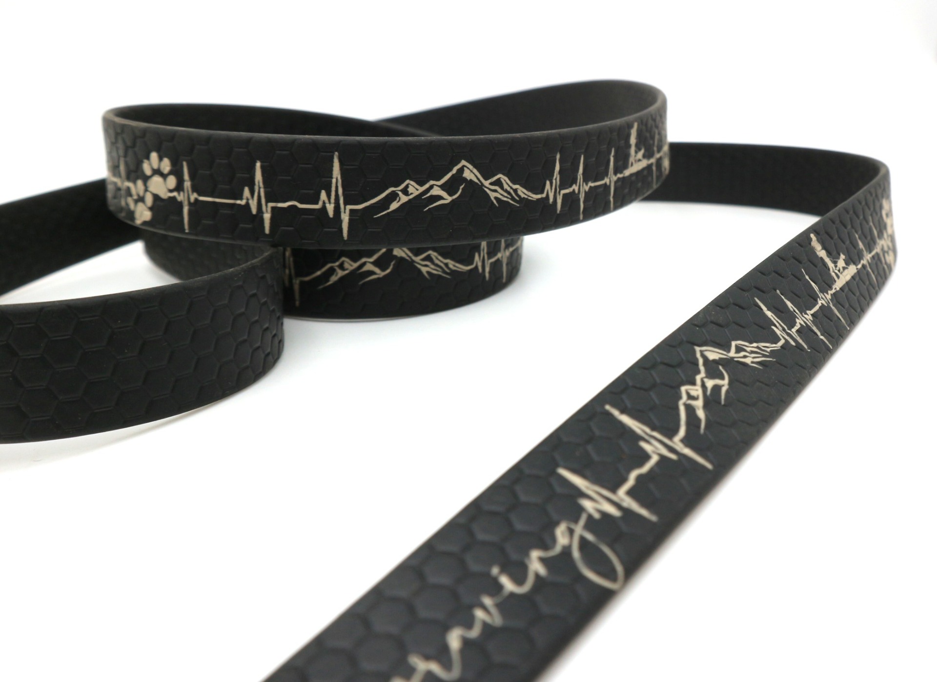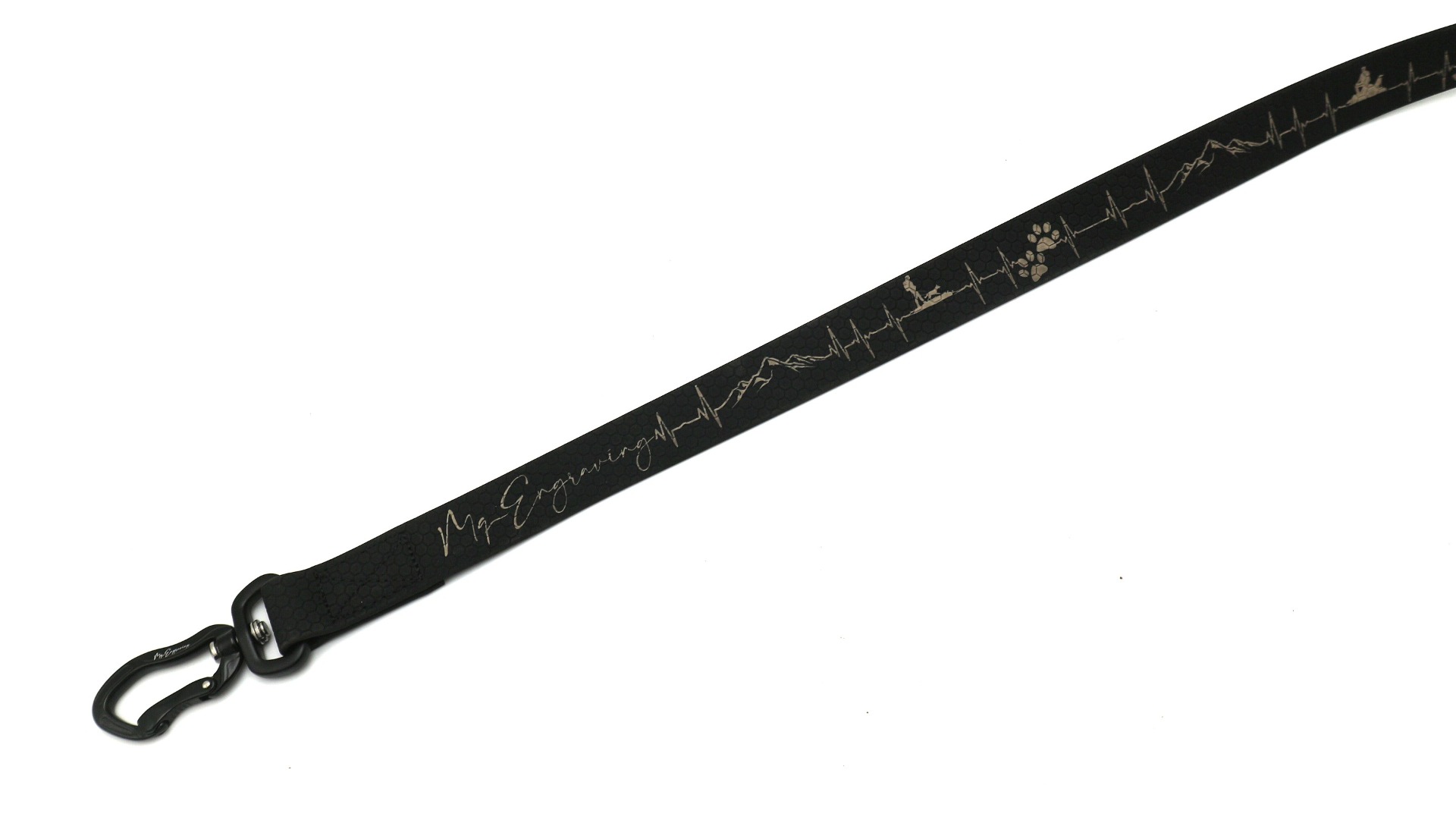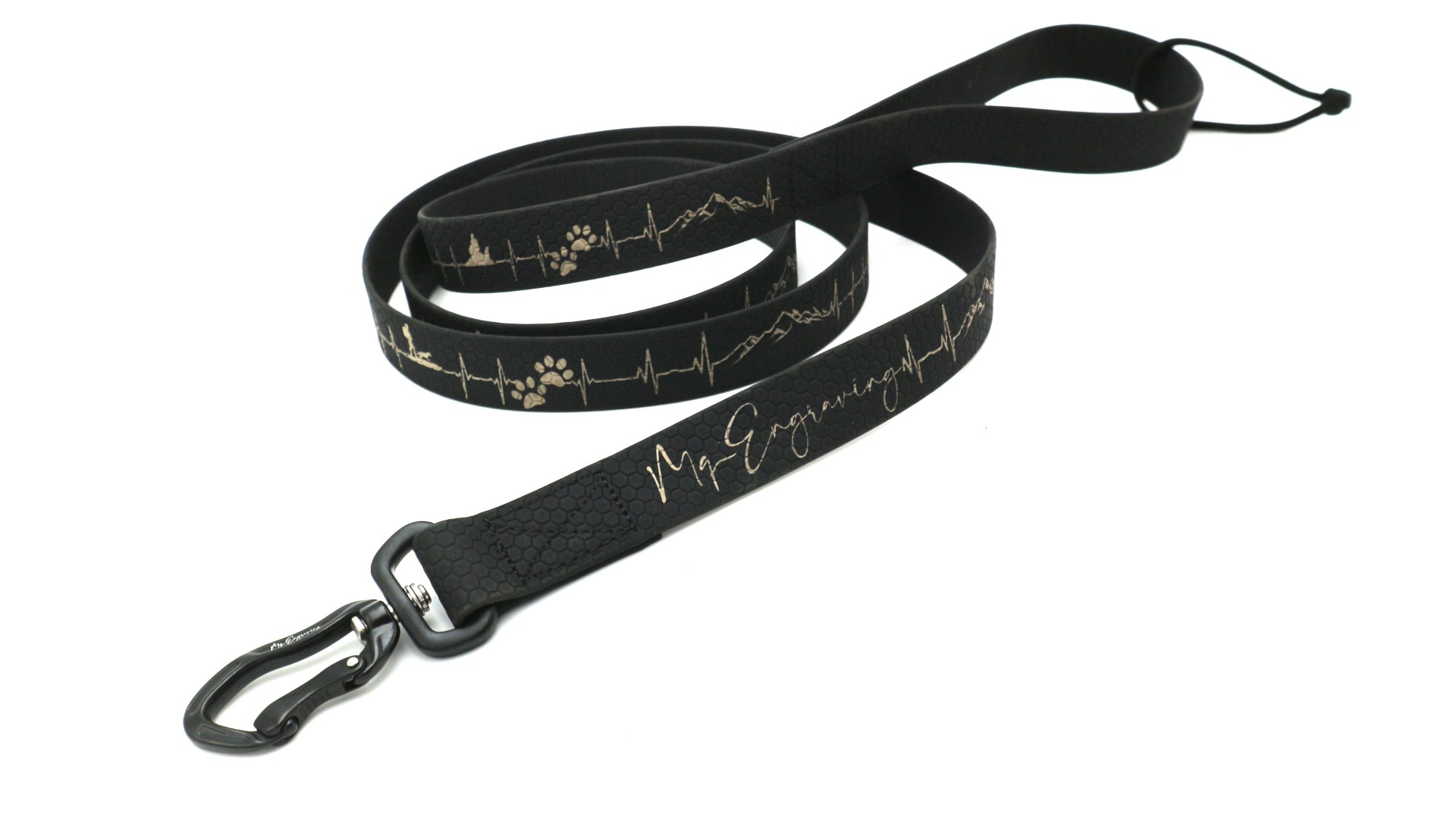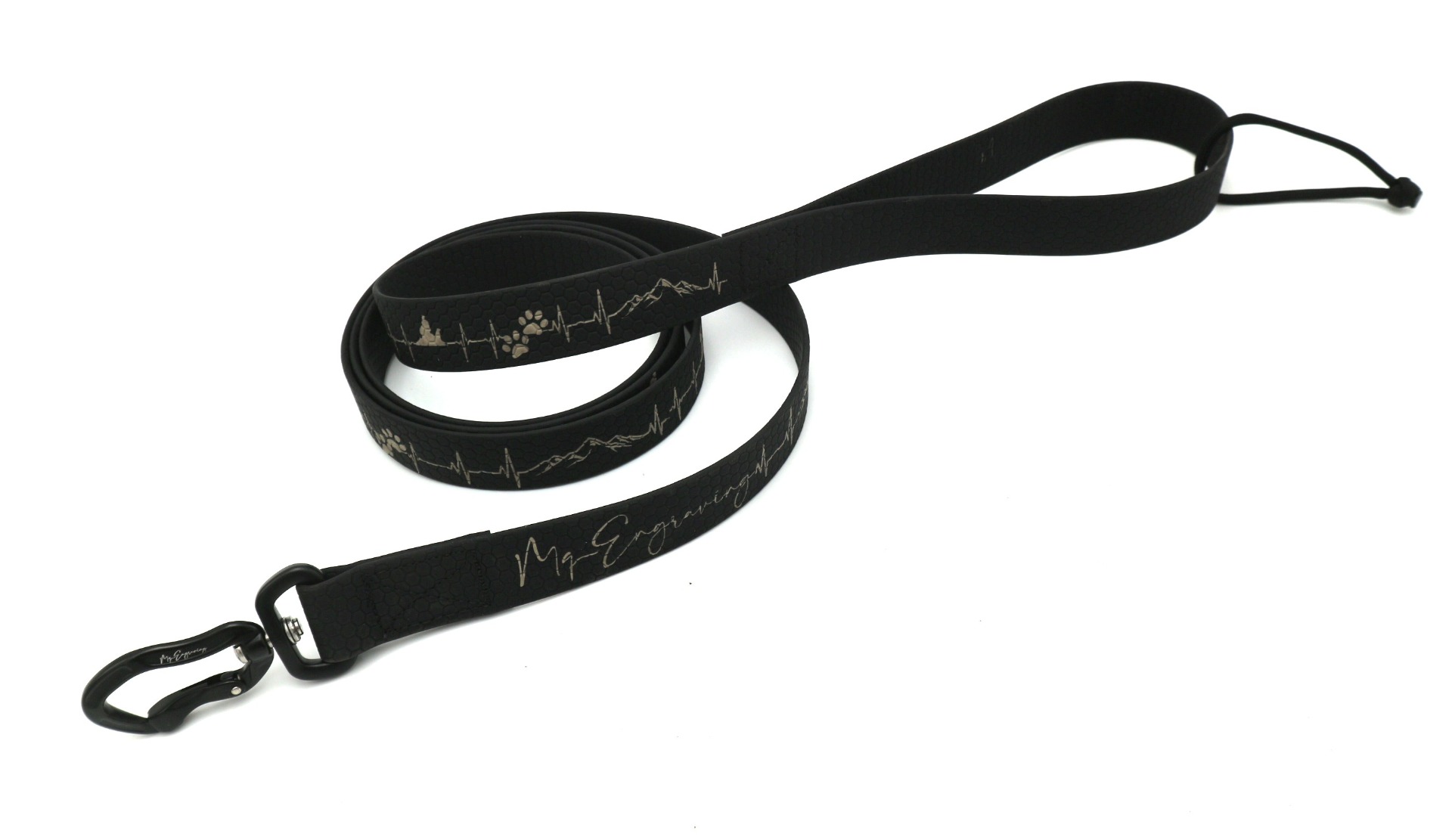 Vysoce odolné vodítko HEXA s gravírovaným motivem, je vyrobeno z voděodolného popruhu (známý jako BioThane® ). Jedná se o popruh, který je potažený PVC materiálem. Oproti běžným polypropylenovým popruhům se vyznačuje mnohem větší odolností. Popruh vyniká odolností vůči oděru a vytahování. Dále nepohlcuje pachy ani plísně a je jednoduše omyvatelný vodou. Popruh má oboustrannou strukturu ve tvaru včelí plástve (Hexa vzor), díky strukturovanému povrchu, méně prokluzuje a je příjemné na dotyk.